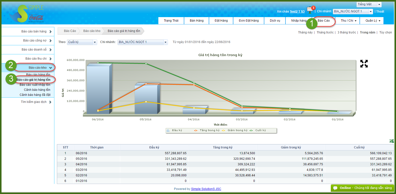 Giá trị hàng tồn chính là tiền vốn người kinh doanh đổ vào hàng hóa, và tâm lý của người kinh doanh là nhanh chóng bán hết sản phẩm trong kho để thu hồi lại vốn, kiếm được lợi nhuận và tái đầu tư vào hàng hóa 1 lần nữa. Vậy nên với Báo cáo giá trị hàng tồn trên phần mềm S3POS, người kinh doanh có thể dễ dàng kiểm soát hay theo dõi được giá trị hàng tồn, từ đó nhanh chóng có được kế hoạch nhập xuất hợp lý, tránh dẫn tới tình trạng chôn vốn quá lâu đang khi sức bán yếu.