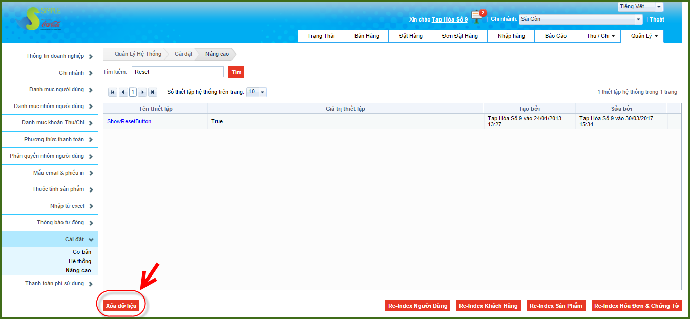 Để xóa toàn bộ (reset) dữ liệu trong tài khoản, bạn thực hiện theo hướng dẫn sau đây.