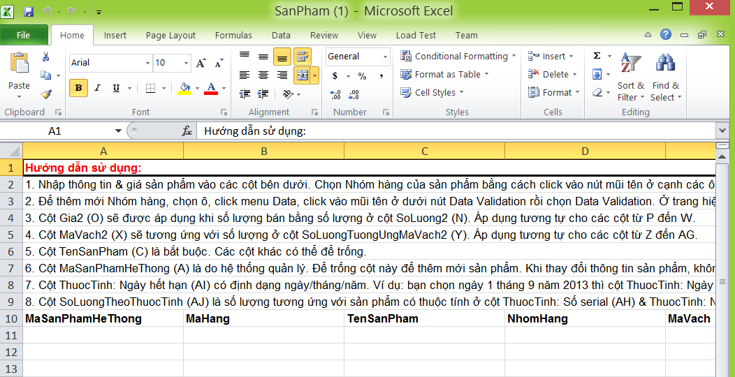 Click vào chữ tại đây để tải file SanPham.xls về máy tính