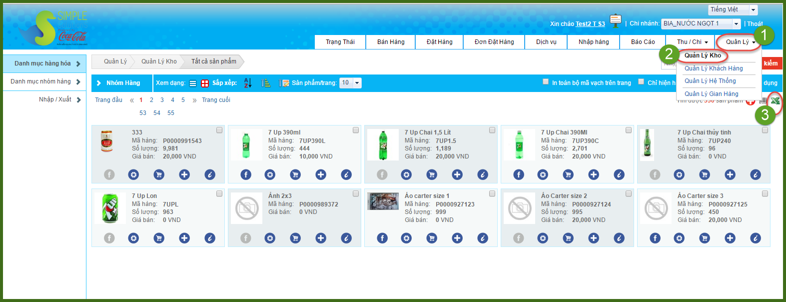 + Vào Quản lý >> Quản lý kho >> bấm biểu tượng Excel để tải danh mục hàng hóa về máy