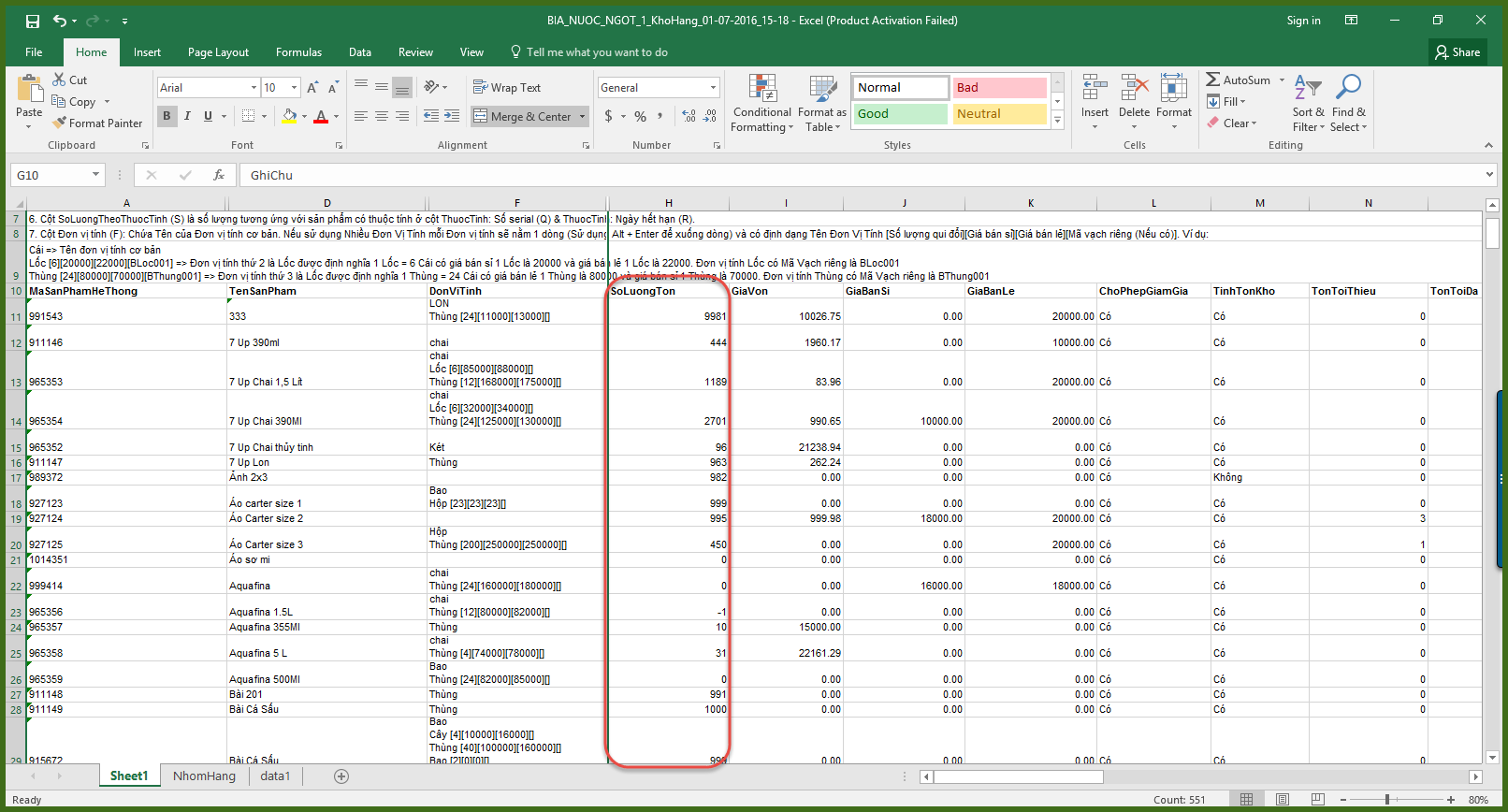 Cách 2. Cân đối hàng tồn bằng file excel: