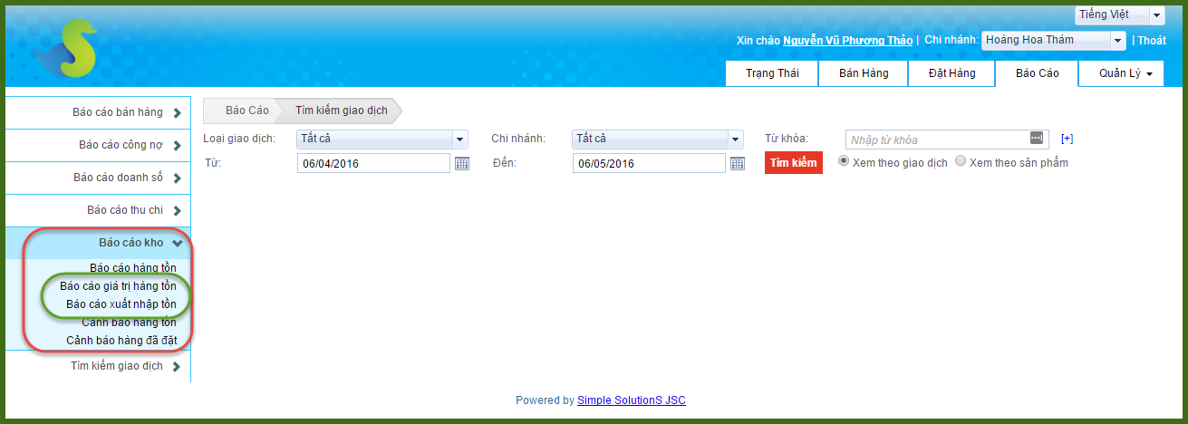 Hình 2.2. Báo cáo kho khi có BẬT tính năng bán âm