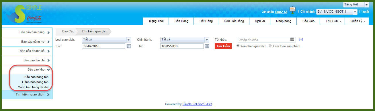 Hình 2.1. Báo cáo kho khi TẮT tính năng bán âm
