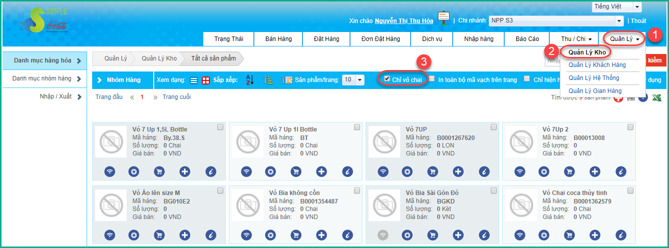 Nhầm hỗ trợ các cửa hàng cũng như các nhà phân phối trong lĩnh vực bia – nước giải khát quản lý tốt vỏ chai, S3 đã cập nhật thêm tính năng Quản lý vỏ chai trên phần mềm.