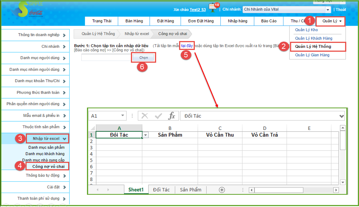 #Không chỉ ghi nhận công nợ vỏ chai bằng thao tác trực tiếp trên phần mềm, S3 còn ghi nhận công nợ vỏ chai bằng file excel.